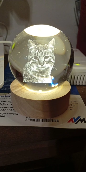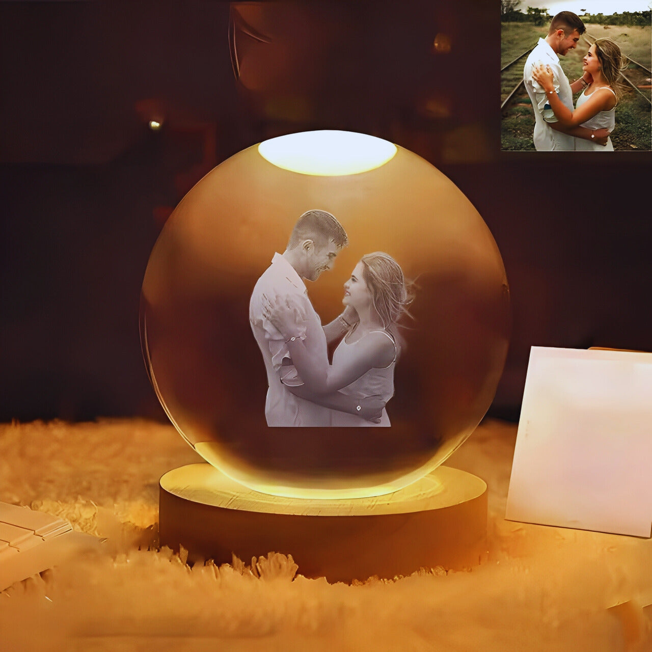 Once you upload your chosen photo, we carefully engrave it inside a crystal orb using precision laser technology. The orb comes with an LED light base that illuminates your image, creating a stunning 3D effect. Just plug it in and watch your memory glow!