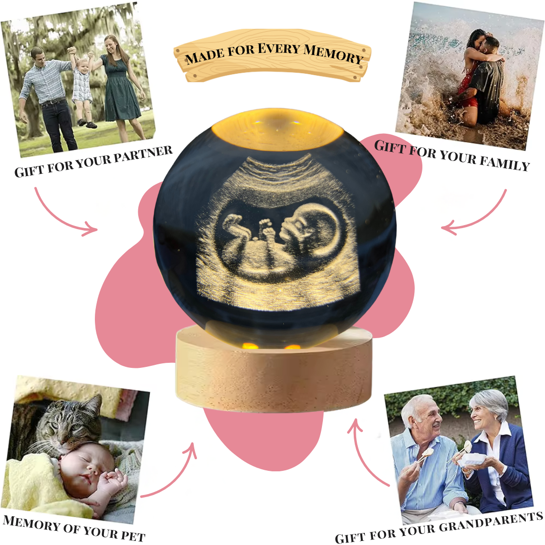 Turn life’s most meaningful memories—like your baby’s first ultrasound or a special moment with a loved one—into a glowing keepsake that lasts forever.